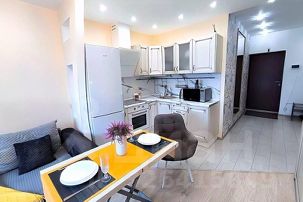 * Качественная мебель: комфортный большой угловой диван, удобная кровать с матрасом Askona, шторы блэкаут.
