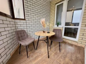 - Уютный *столик и стулья на лоджии* наслаждайтесь видом, завтраком на свежем воздухе или вечерним чаем.