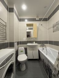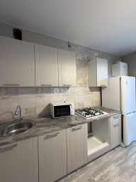 В квартире сделан евро-ремонт и есть всё необходимое для проживания: двуспальный диван, рабочий стол с компьютерным стулом, большой встроенный шкаф-купе, кухонный гарнитур с варочной панелью, микроволновая печь, электрический чайник, стиральная машина, ванна.