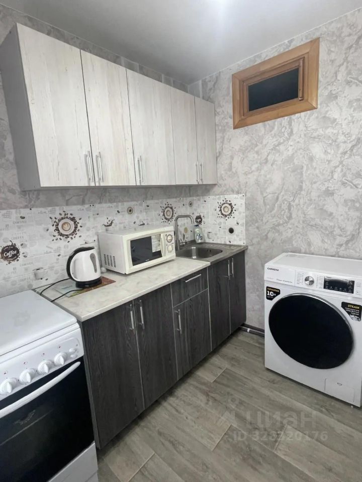Кухня оснащена всем необходимым: холодильник, плита и стиральная машина.