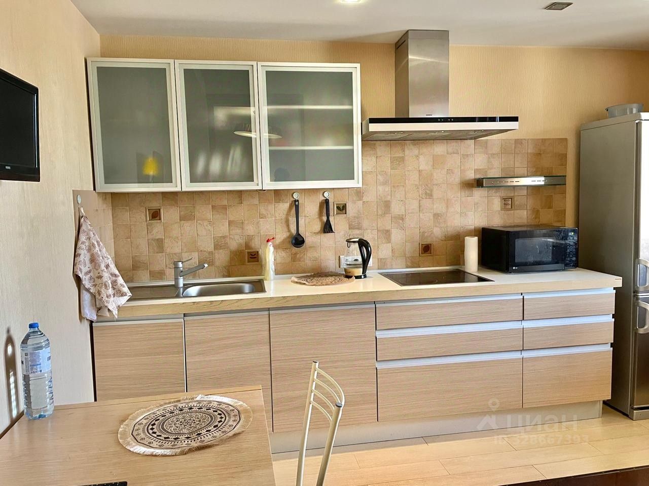 В квартире выполнен евроремонт, поэтому обстановка современная и уютная. Кухня полностью оборудована мебелью и техникой, включая холодильник и кондиционер, что делает её идеальным местом для приготовления и приёма пищи. В комнате тоже есть вся необходимая мебель. Ванная комната оборудована ванной, а также стиральной машиной, поэтому можно легко поддерживать порядок и чистоту. Кроме того, в квартире установлен телевизор, поэтому можно наслаждаться любимыми передачами и фильмами.