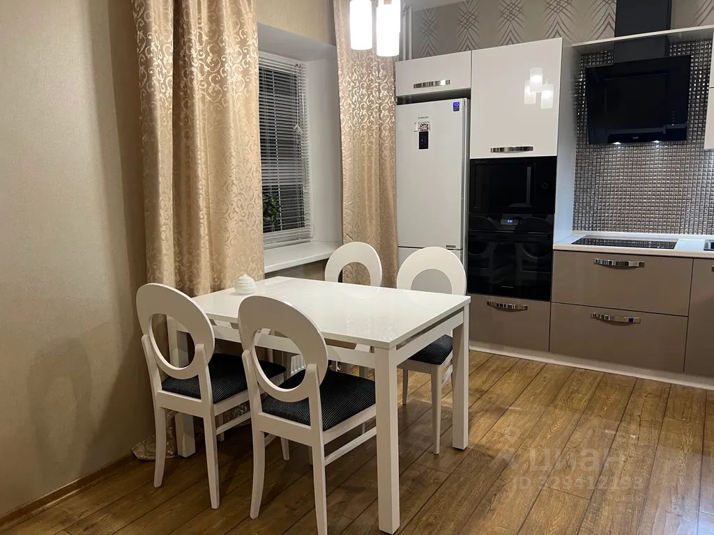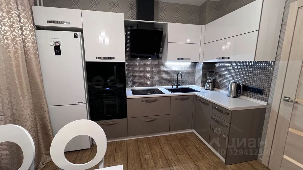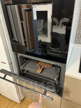 Кухня оснащена качественной бытовой техникой: варочной поверхностью, вытяжкой, духовым шкафом, микроволновой печью, посудомоечной машиной, холодильником, электрическим чайником, установлен фильтр воды.
