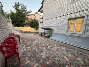Капитальный дом на 10 спальных мест с бассейном 11 м. на верхней террасе участка, гаражом на три машины, мангалом, грилем, зоной отдыха на улице 15x7 м. Есть все для проживания и отдыха: постельное белье, полотенца, тапочки, гладильные принадлежности, стиральные машины, холодильники, две кухни, 5 диванов, детская кроватка, микроволновка, мощные сплит система 24-ка на каждом этаже, широкоформатные современные телевизоры 3 шт. и более 700 открытых телеканалов, интернет, Wi-Fi.