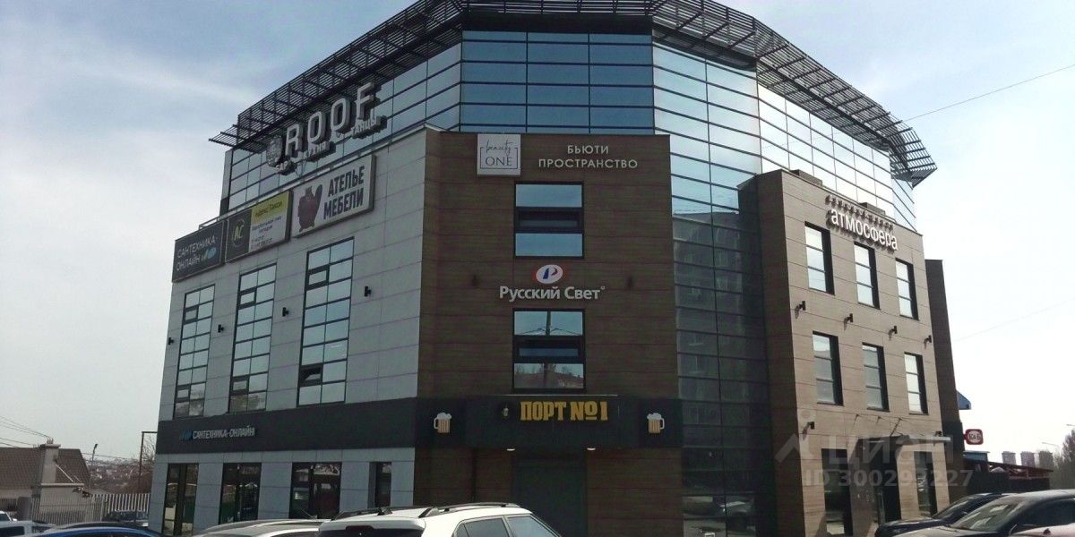 - на 1 этаже находится магазин КБ, пивной магазин, магазин сантехники. На 2-3 этажах офисные помещения, салоны красоты и пр. На 4 этаже кафе "Roof";