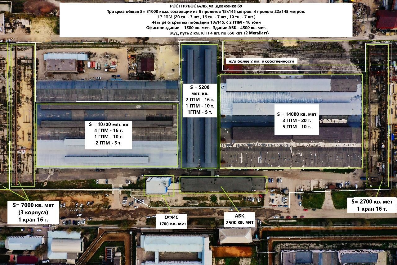 Продаётся складской и производственный комплекс в г. Волгоград по адресу ул. Довженко 69, общей площадью 31 000 м2.