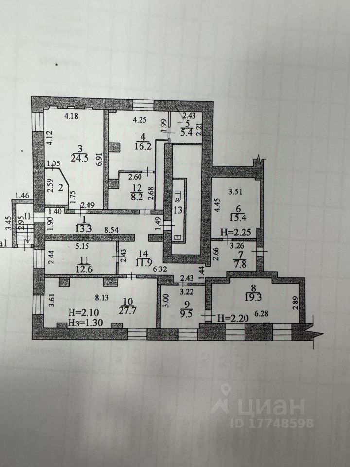 Помещение состоит из 6 комнат, 1 санузла и коридора.