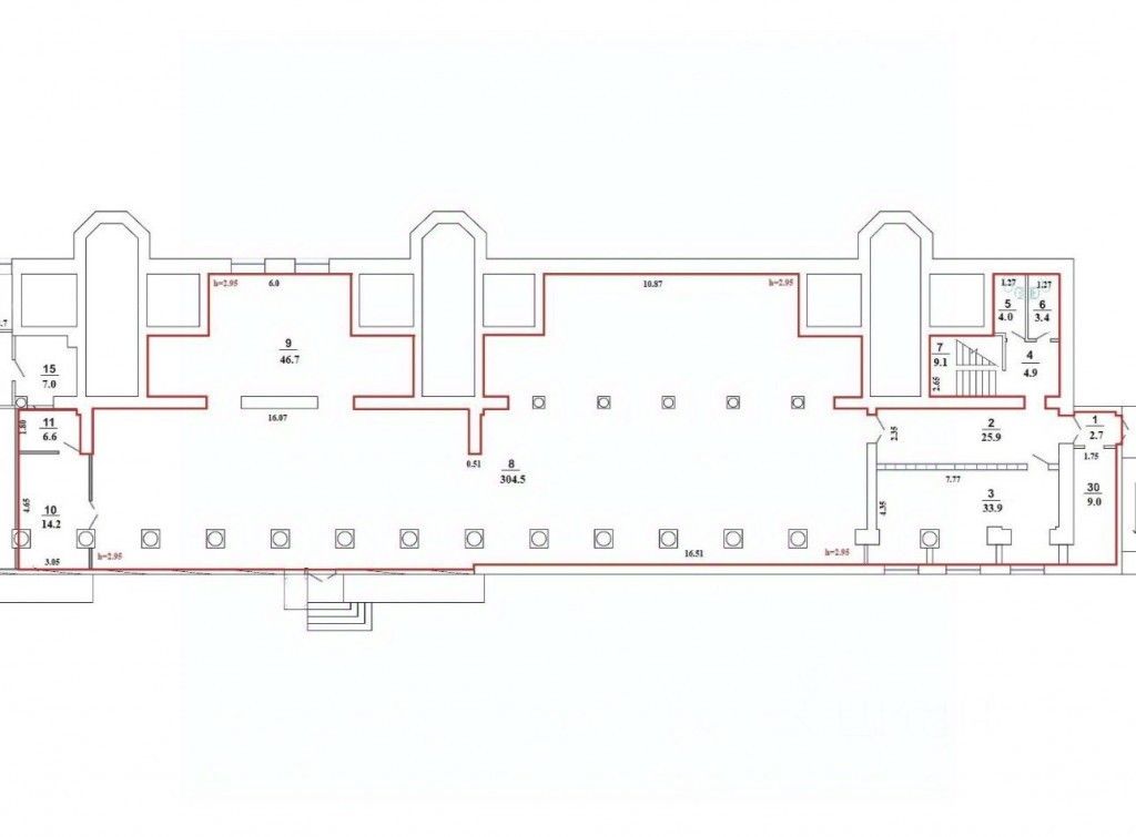 К помещению прилагается подвал площадью 617 кв.м.