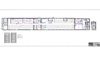 Потолки - 8,6 м, пол бетонный (для беспылевого нужно нанесение финиша), нет колонн, пролеты здания 18*140 м.