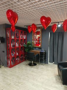 Основной зал оборудован удобными зонами для работы мастеров, а также есть отдельный кабинет для работы косметолога и массажиста, комната отдыха персонала, оборудована зона ногтевого сервиса, санузел и комната для технического обслуживания.