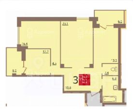 Общая площадь 92,9 кв.м.