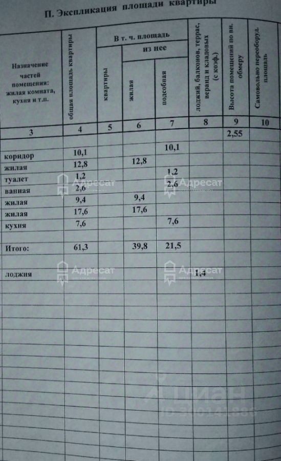 Квартира общей площадью 61,3 кв.м. расположена в кирпичном доме с удачной планировкой. Пространство включает: