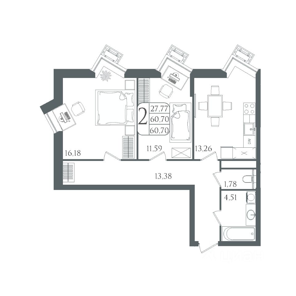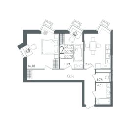 Общая площадь60,7 м²