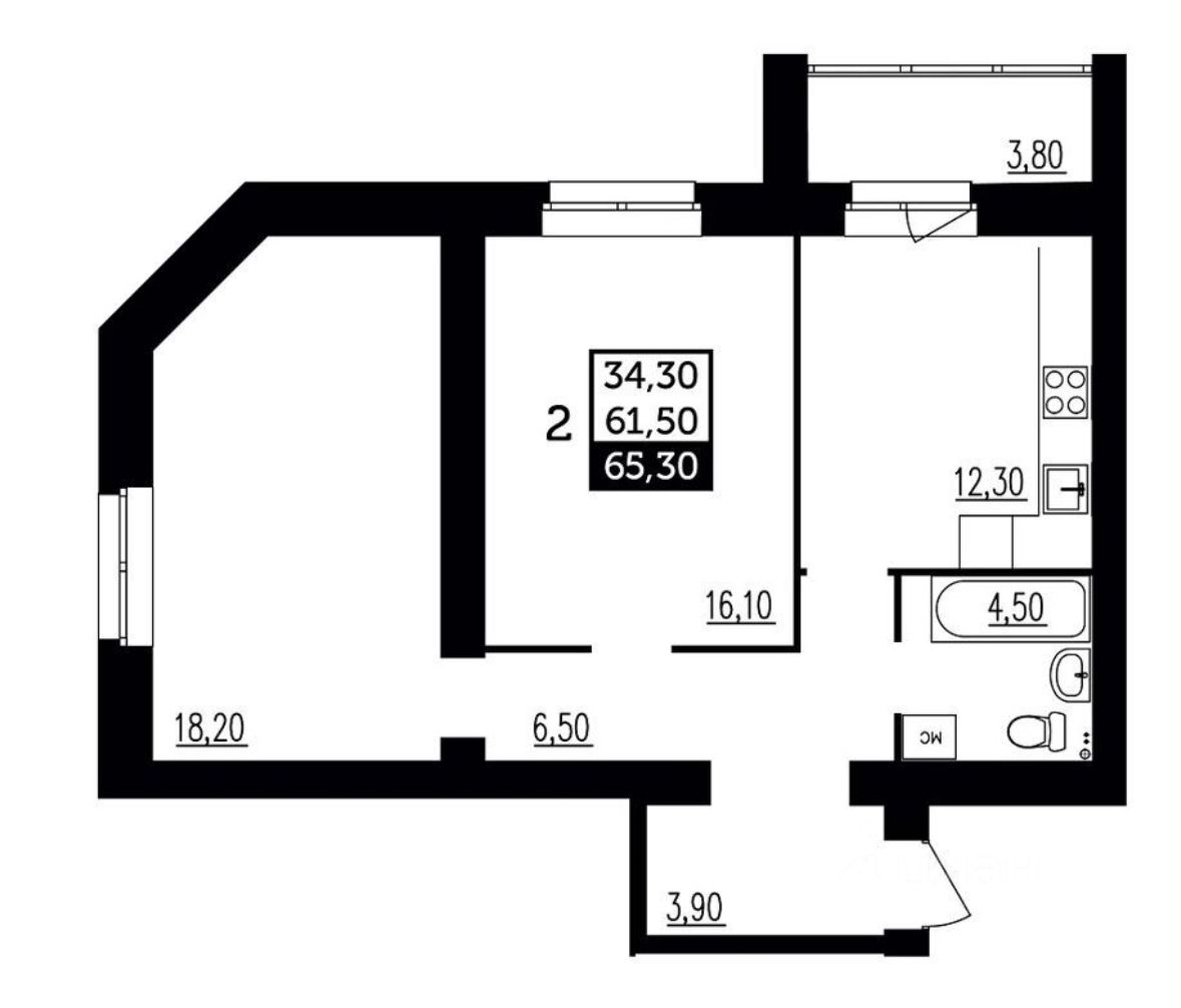 Общая площадь 65,3 м2;