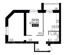 Жилая 34,3 м2;