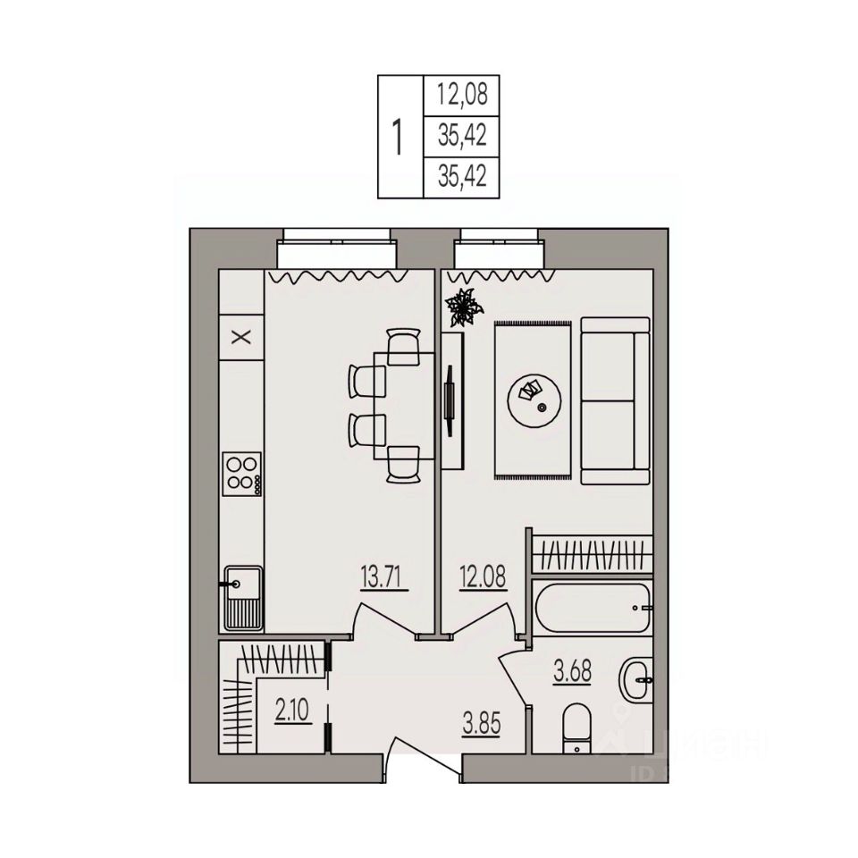 Общая площадь35,42 м²