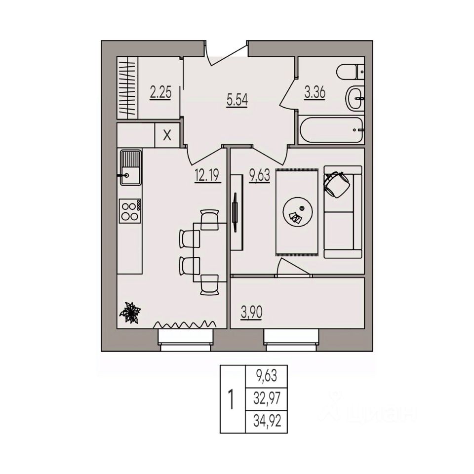 Высота потолка 3 м;