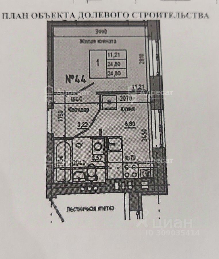 Общая площадь объекта составляет 24,8 м²,