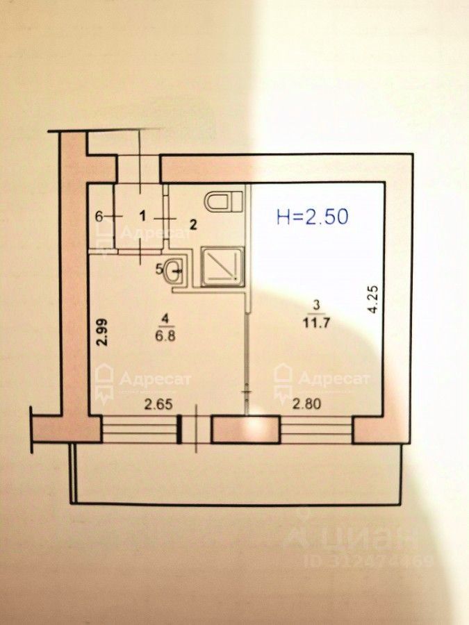 Жилая площадь - 11,7 кв.м.