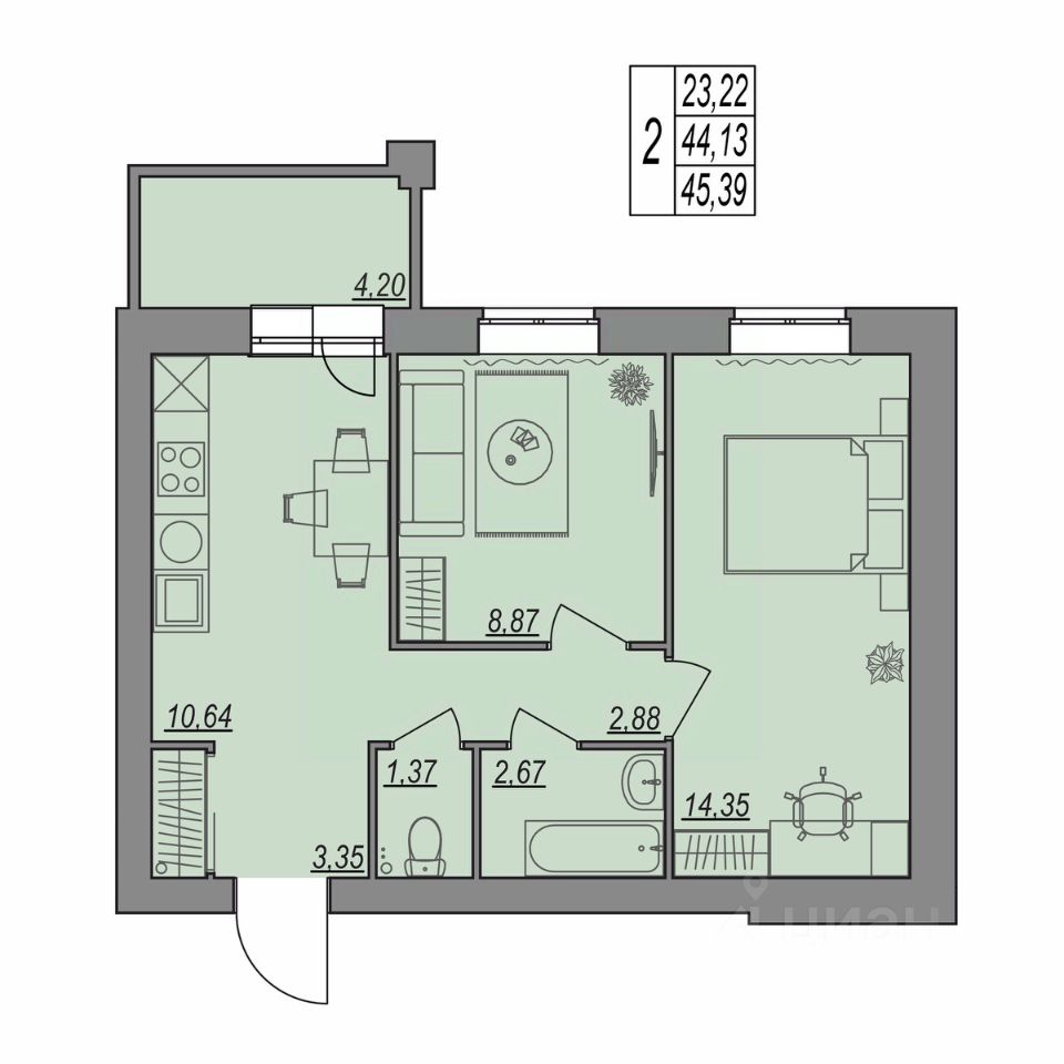 45,39 м²