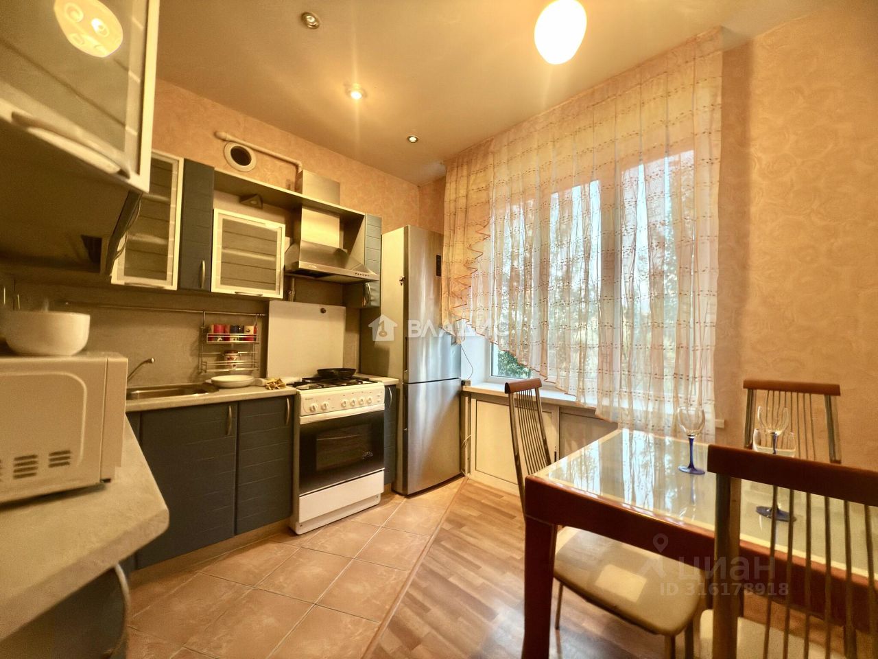 Качественный кухонный гарнитур со встроенной техникой, встроенные просторные шкафы/купе , диван- кровать и настенное\потолочное освещение ,шторы остаются при продаже.