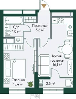 Общая площадь41,55 м²