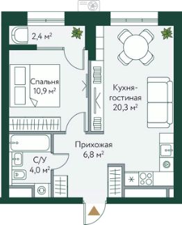 Жилая площадь10,9 м²