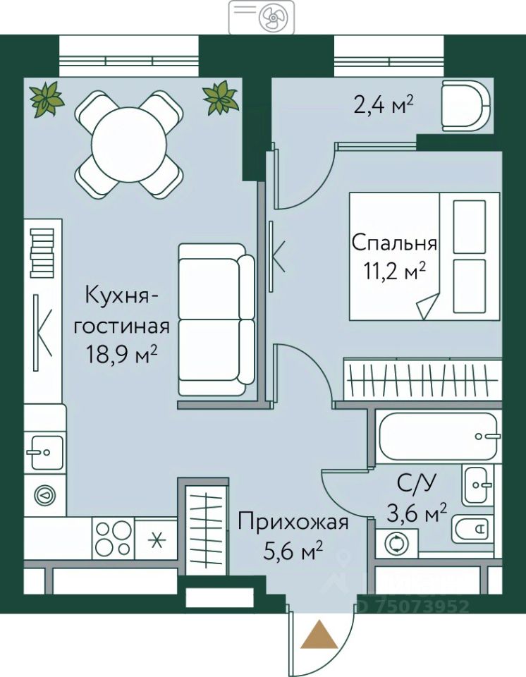 Жилая площадь11,2 м²
