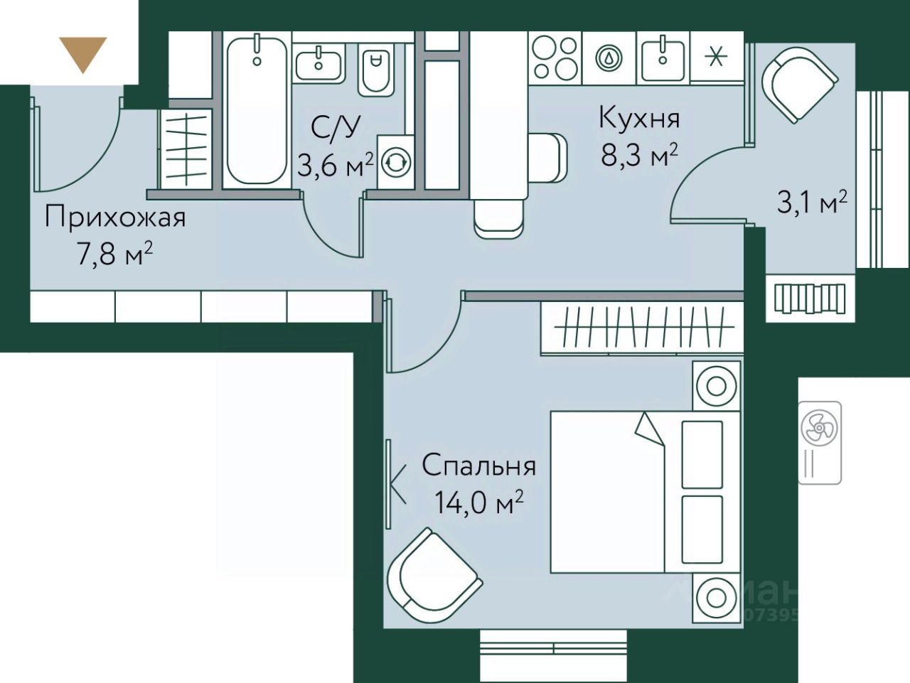 Площадь кухни8,3 м²