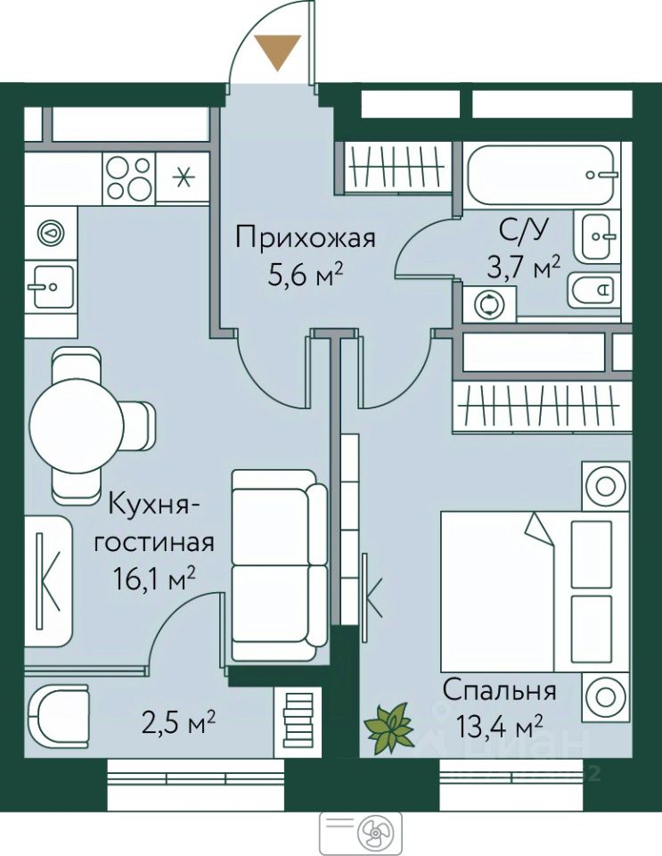 Общая площадь41,3 м²