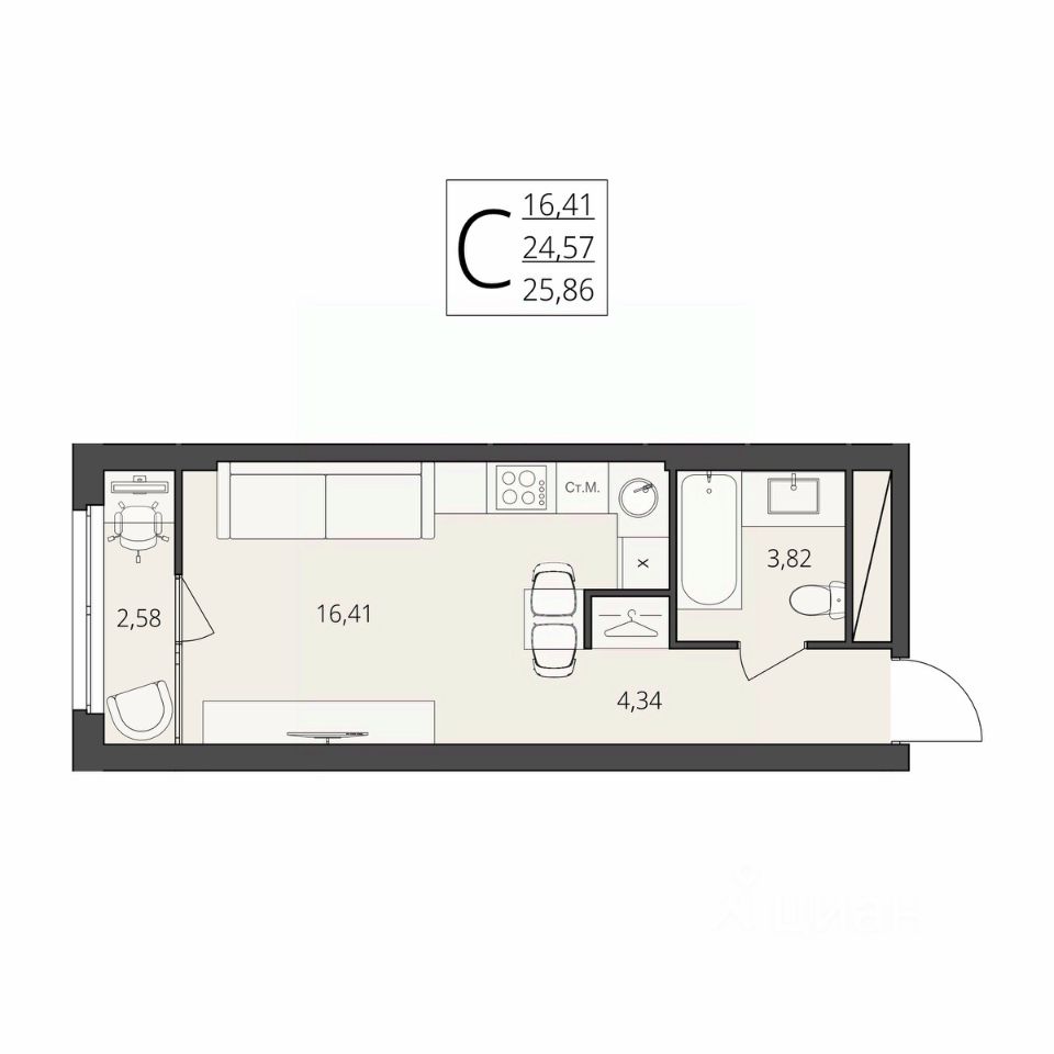 Общая площадь25,86 м²