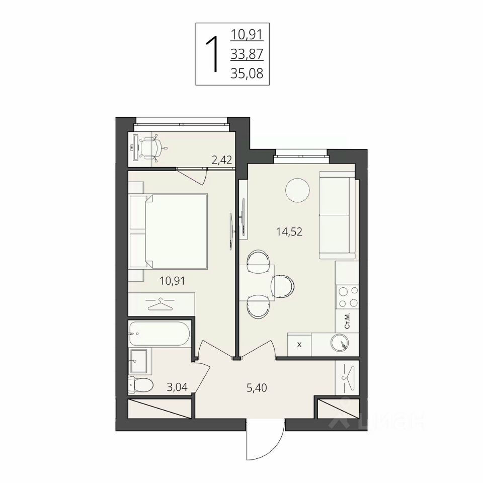 Общая площадь35,08 м²