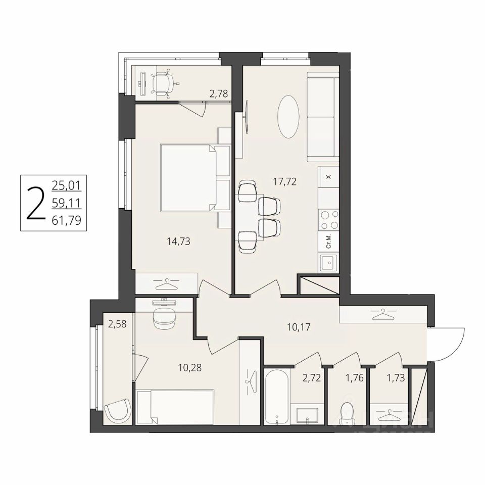 Общая площадь61,79 м²