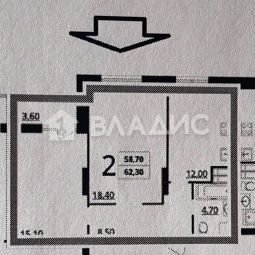 Общая площадь 58,7 кв. м. (без балкона) / жилая площадь 33,5 кв.м. / кухня 12 кв. м.