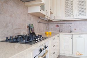 Кухня из массива (Беларусь), доводчики, фильтр для воды, столешница — искусственный камень. Современная техника ( варочная панель, духовой шкаф, вытяжка, посудомоечная машина, стиральная машина) все в отличном состояние. Пол с электроподогревом. Стены ручная декоративная штукатурка, ручная работа.