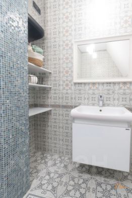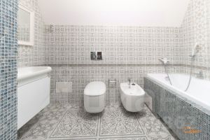 Санузел 6 м² с мозаикой, европейской сантехникой и бойлером на 80 литров — на случай отключения ГВС.