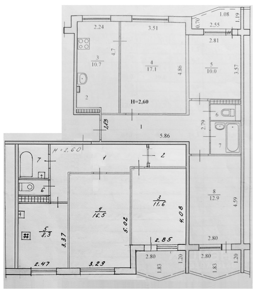 Продается просторная 5-ти комнатная квартира площадью 116,8 кв. м на 8-м этаже 9-этажного панельного дома, состоящая из двух раздельных квартир: двухкомнатной и трехкомнатной. Три лоджии, два санузла, две кухни: 10,7 кв. м и 8,3 кв., общей площадью 19 кв. м. Квартиры расположены на одной стороне лестничной площадки и имеют разные лицевые счета. Возможна раздельная продажа двух- и трехкомнатной квартир, при условии одновременной покупки обеих квартир собственниками. Квартира без обременений, юридически чистая, документы в оригинале с момента возникновения квартиры, как объекта недвижимости, имеются. Один взрослый собственник. . Квартира без мебели, с частичным ремонтом, что дает вам возможность оформить интерьер по своему вкусу. Также имеется материал для оставшегося ремонта: кафельная плитка напольная и панельная, в т.ч., декоративная, обои, электрика, сантехника, душевое ограждение (в упаковке): SanSwiss, Н=1900, А=900, Чехия. Есть встроенная кухня, две сплит системы, на окнах, включая лоджии, установлены стеклопакеты и роль-ставни с электрическим приводом, система видеонаблюдения с возможностью подключения к интернет. Окна выходят как на улицу, так и во двор, что обеспечивает хорошую освещенность и циркуляцию воздуха. Вид из окон квартиры панорамный, с видом на Мамаев курган. Дом находится в хорошем состоянии, есть пассажирский лифт и мусоропровод, что делает проживание комфортным. Для владельцев автомобилей предусмотрена наземная парковка. Рядом с домом есть гаражный кооператив, что дает возможность в дальнейшем приобрести гараж. В шаговой доступности расположены школы, детские сады, общественный транспорт, рынок и магазины, что делает район удобным для семейной жизни. Продажа квартиры осуществляется без посредников, от собственника. Приглашаем вас на просмотр, чтобы оценить все преимущества этой квартиры лично. Звоните и пишите в удобное время!