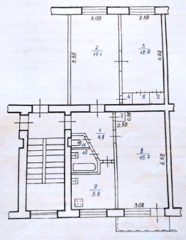 Квартира находится на четвертом этаже. Общая площадь-62,7 м², жилая -46,7 м² , кухня-5,8 м².
