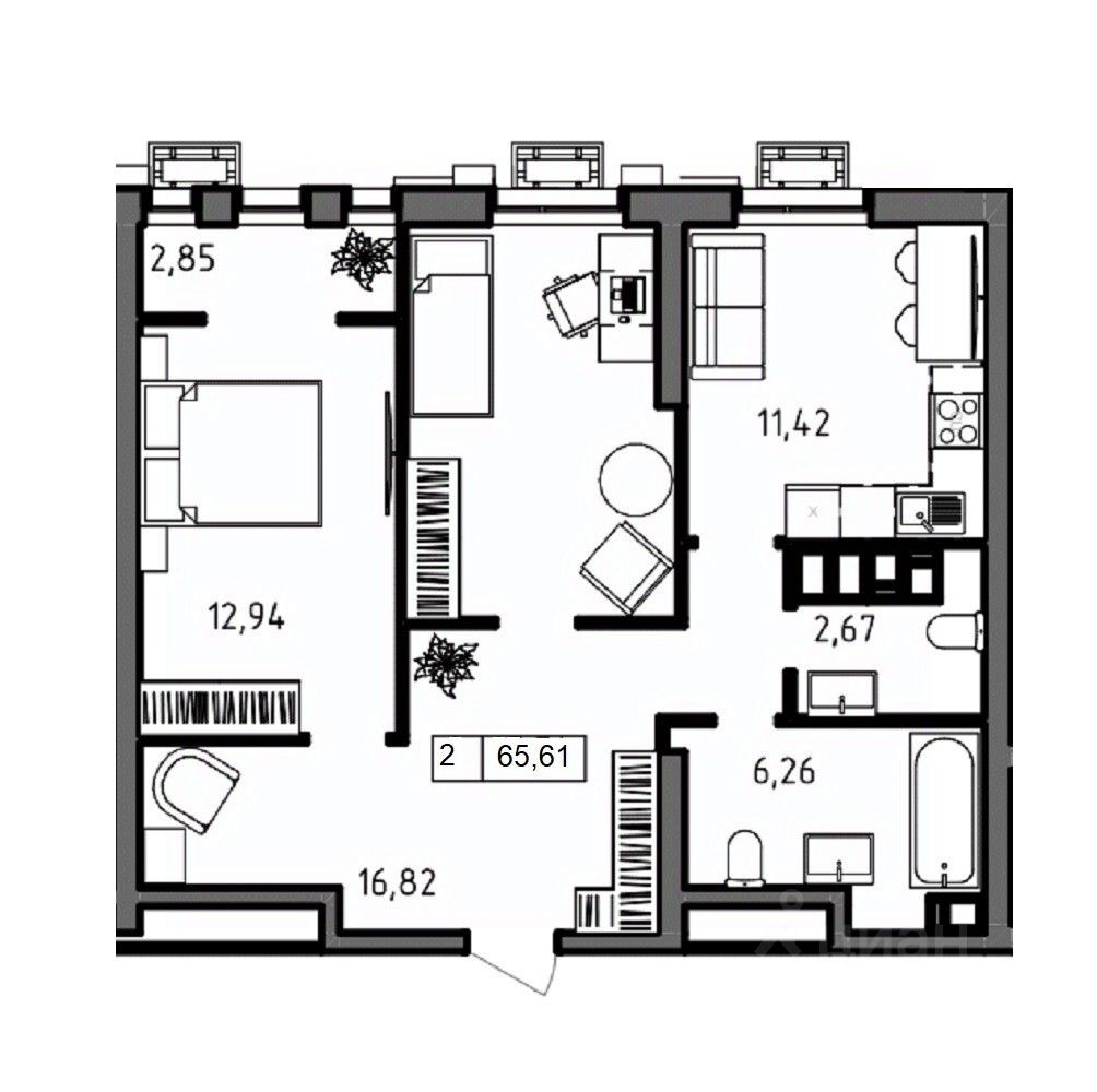 Общая площадь65,61 м²