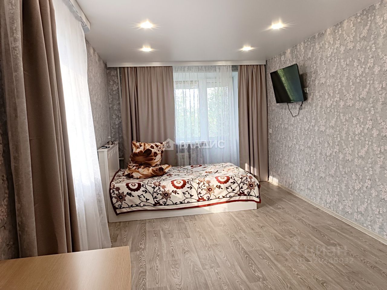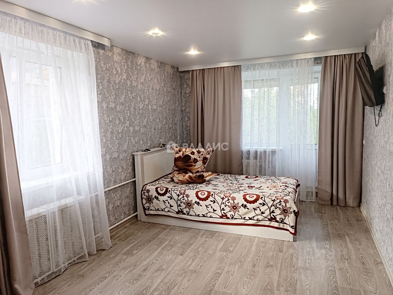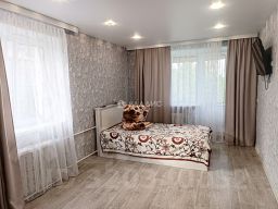 4-й этаж 4-этажного кирпичного дома. Есть балкон. Заменены окна, новая входная и межкомнатная дверь. Полностью заменена электропроводка, установлен врезной щиток. Все счетчики (вода, газ, электричество). Натяжной потолок в зале со светодиодными светильниками (управление пультом). Санузел: кафель на стенах и полу, подвесной потолок со светильниками. Кухня: новый гарнитур, на стене фартук из плитки, на полу линолеум. Комната: на полу линолеум, большая кладовка в зале.