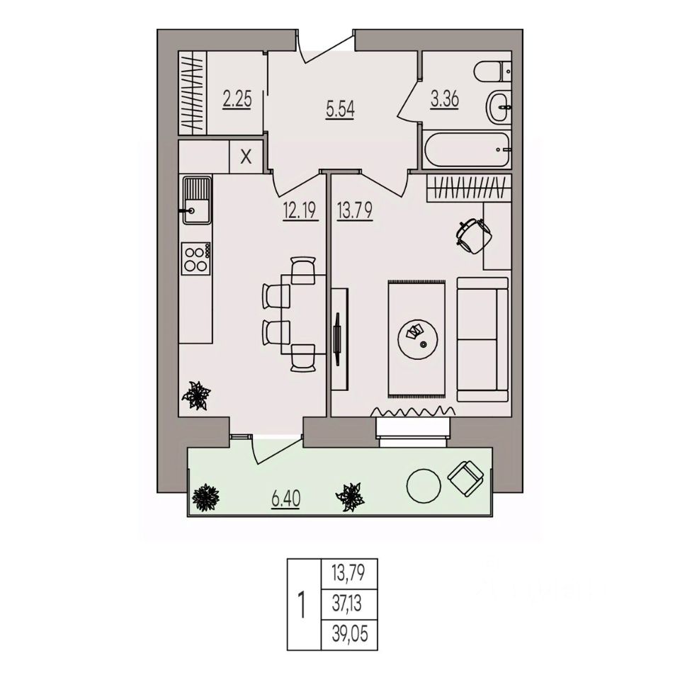 Высота потолка 3 м;