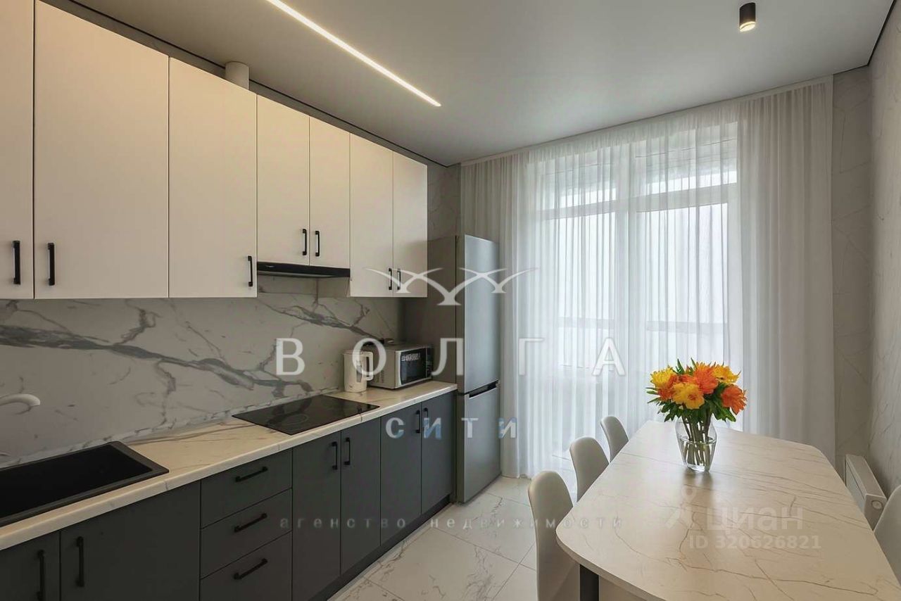 Просторная кухня с застекленной лоджией станет идеальным местом для семейных ужинов и встреч с друзьями.