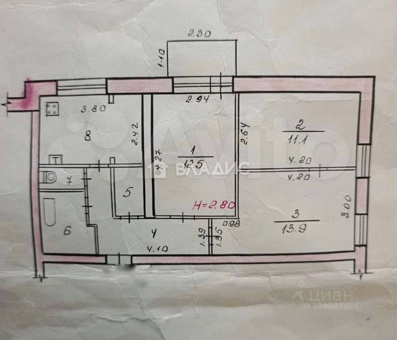 Большая просторная квартира с высокими потолками 3 метра, под ремонт.