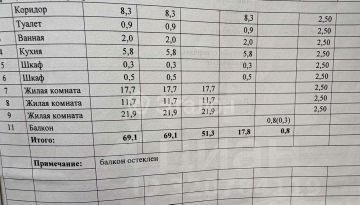 Жилая площадь - 52,3 кв. м.