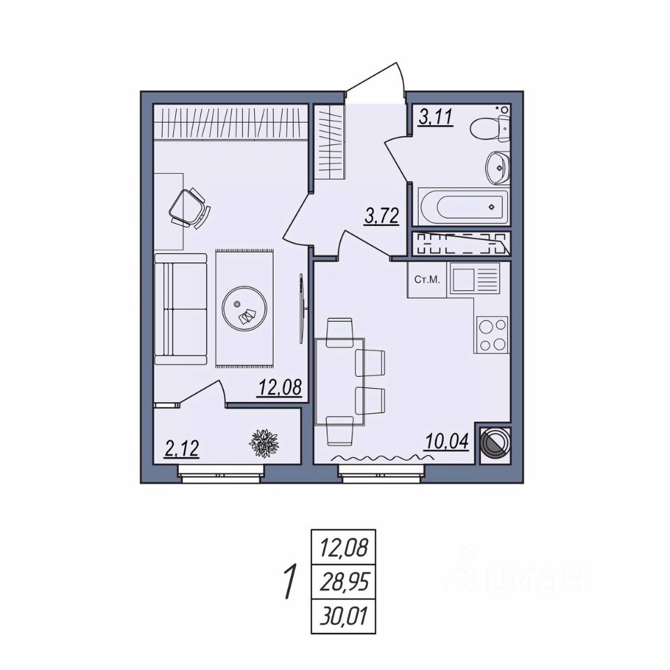 Общая площадь30,01 м²