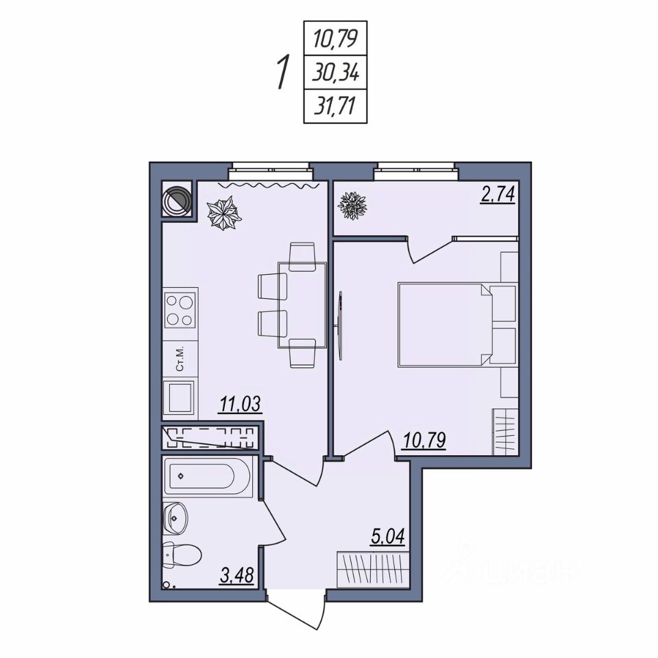 Общая площадь31,71 м²