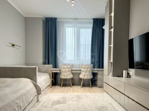 Квартира в отличном состоянии. Натяжные потолки. Пластиковые окна. Окна тройной стеклопакет с шумо и теплоизоляцией. Зал с французским остеклением, спальня с большой лоджией и витражами, кухня с витражами. На полу ламинат. 2 раздельных санузла. Установлены мощные качественные инверторные сплит системы во всех комнатах, в спальне с функцией очистки воздуха. Есть застекленные пластиком лоджия и балкон
