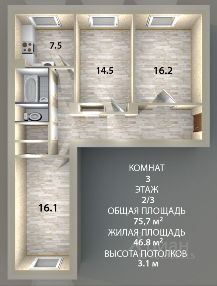 Высокие потолки 3,1 м, просторные комнаты, толстые стены, ж/б перекрытия- надежность и долговечность на века!