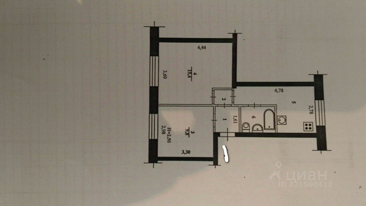 Общая площадь - 41 кв.м. Жилая - 25,4 кв.м Кухня - 9.1 кв.м