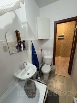 Просторный совмещенный санузел позволяет эргономично распределить все необходимое, стены выложены керамической плиткой.