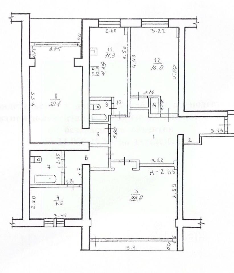 В квартире отличное планировочное решение: просторная кухня 11,3 кв/м, большая гостиная 28,9 кв/м, спальня 20,1 кв/м, вторая спальня 16 кв/м, дополнительная комната 7,5 кв/м (сейчас оборудована под кабинет), два сан.узла.
